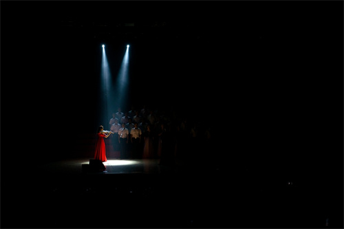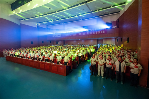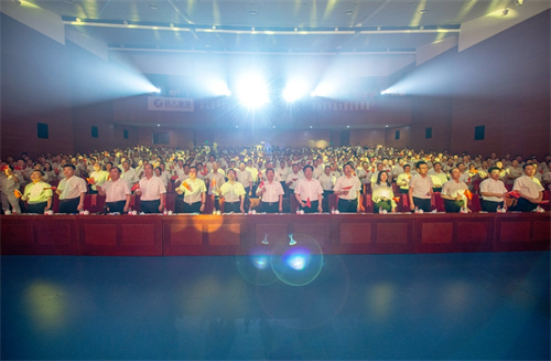 晚7:30,在濰坊文化藝術(shù)中心工人文化宮禮堂,展演活動開始。首先進(jìn)行的一個環(huán)節(jié)是,集團(tuán)全體高管層領(lǐng)導(dǎo)率領(lǐng)中層管理人員、集團(tuán)總部全體員工、各專業(yè)公司項目經(jīng)理、觀禮人員和全部展演人員總計一千多人共同唱響《沒有共產(chǎn)黨就沒有新中國》。隨后,一曲昌大司歌《善建者的力量》徐徐拉開展演帷幕。